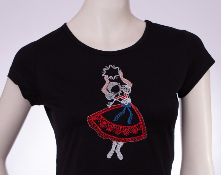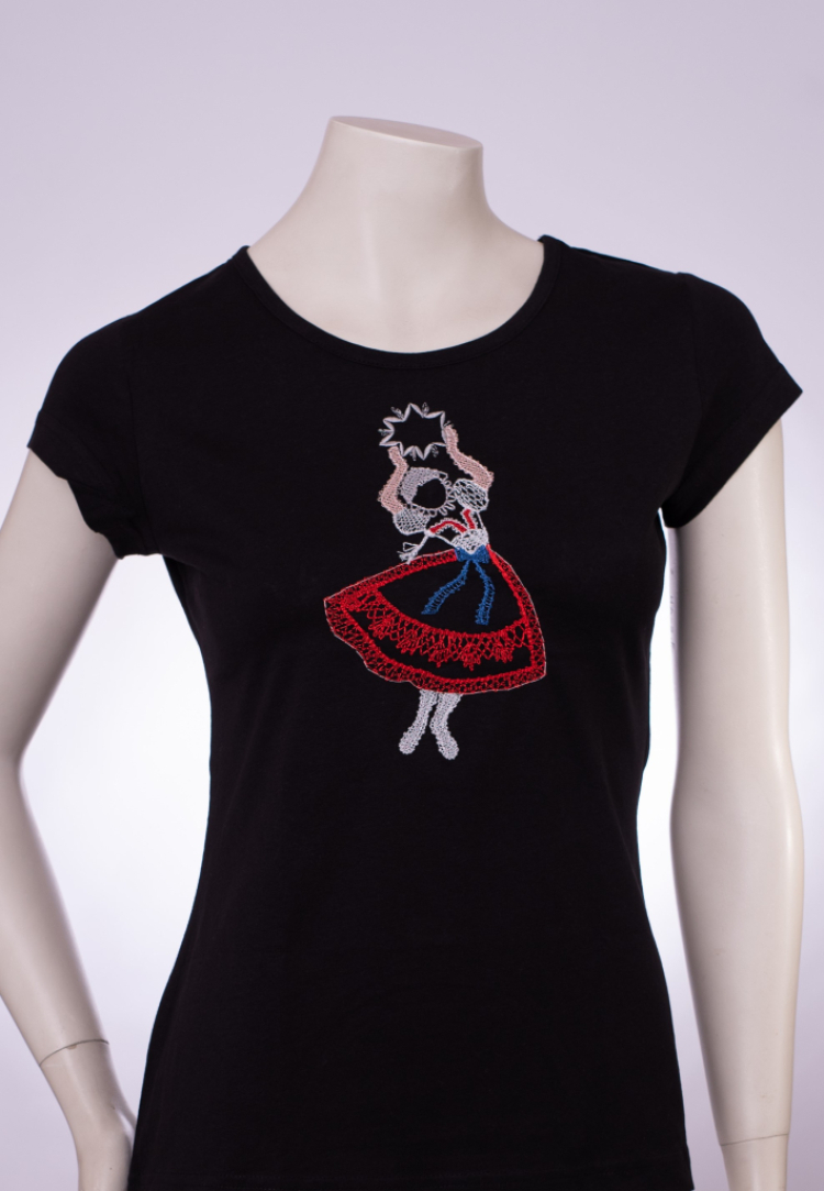 Dámske vyšívané tričko ,,ŠŤASTIE" - paličkovaný vzor/ čierne
